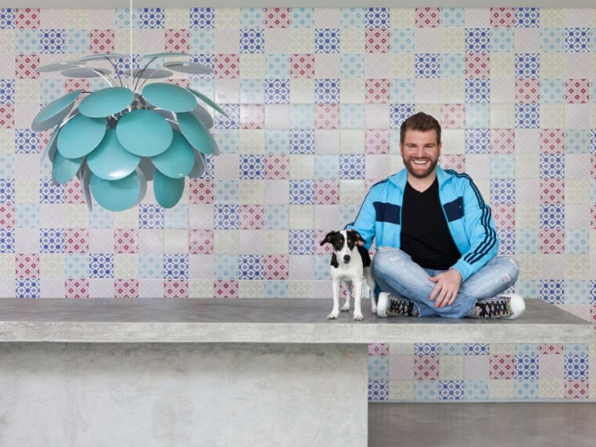 O designer Guilherme Torres, sobre a mesa de jantar que tem em casa