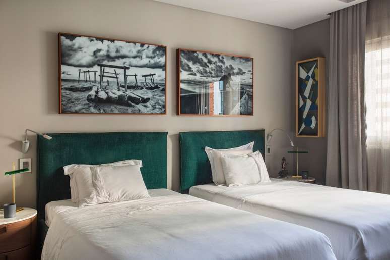 Vale destacar ainda o imenso tapete que integra as duas salas de estar, produzido sob medida pela Santa Mônica, com 4,5 x 12m. Já na área íntima, o piso foi revestido em taco de madeira e as paredes com papel de parede fornecido pela Celina Dias.