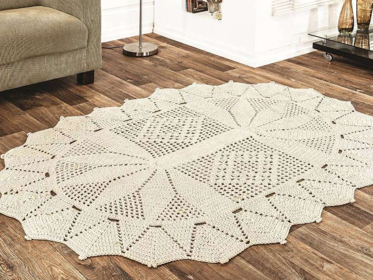 Os tapetes de barbante de crochê apresentam uma grande variedade de estilo de pontos que combinados criam desenhos e texturas nas peças.