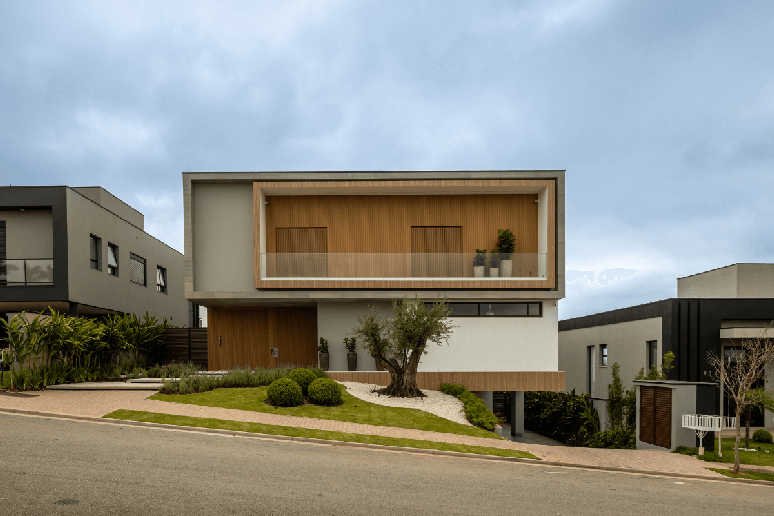 "Em muitas residências, a garagem ocupa quase toda a frente da casa. Quando conseguimos levá-la para um pavimento inferior, o ganho estético é imediato", pontuam os arquitetos Mariana Meneghisso e Alexandre Pasquotto.