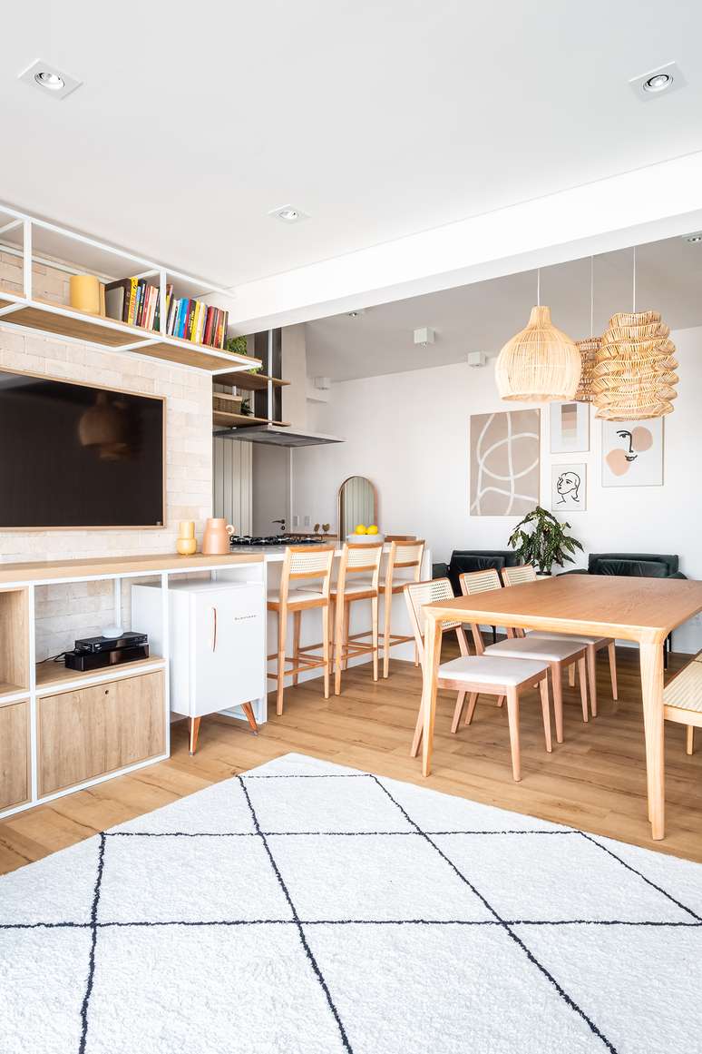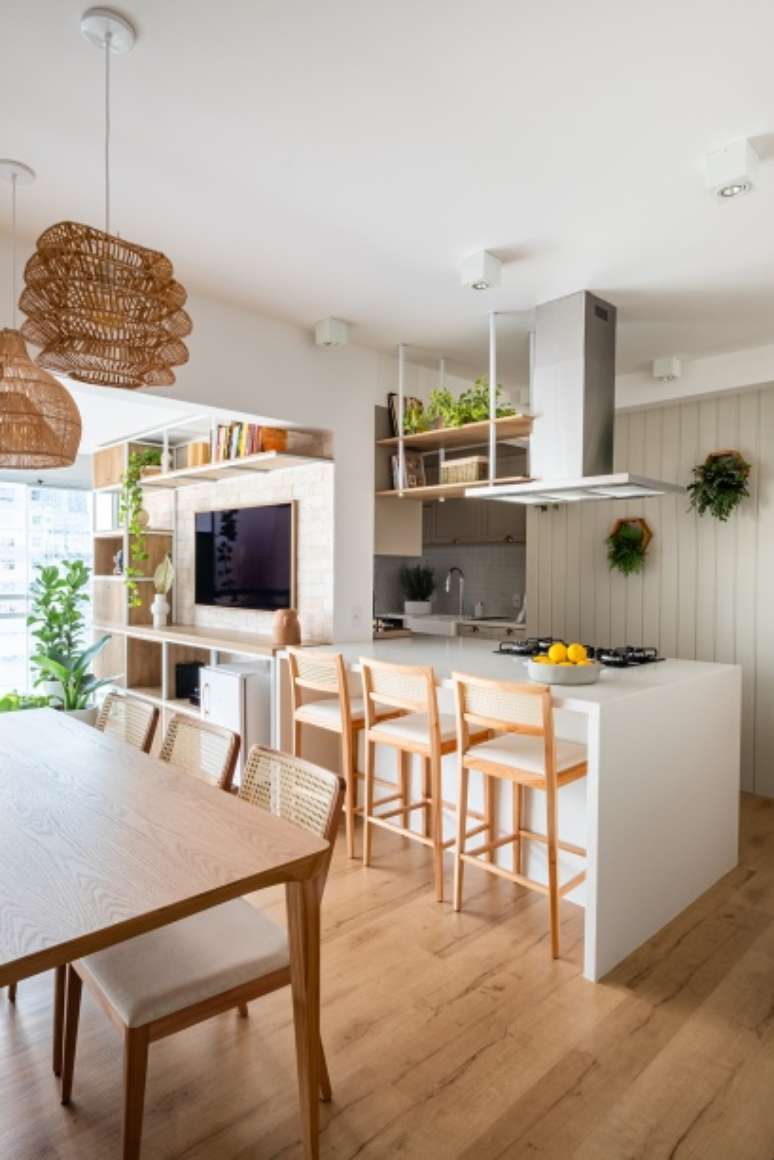 A arquiteta Mariana Rasslan, do Studio Moby Dick, também integrou ambientes e tirou partido das cores claras para aumentar a amplitude
