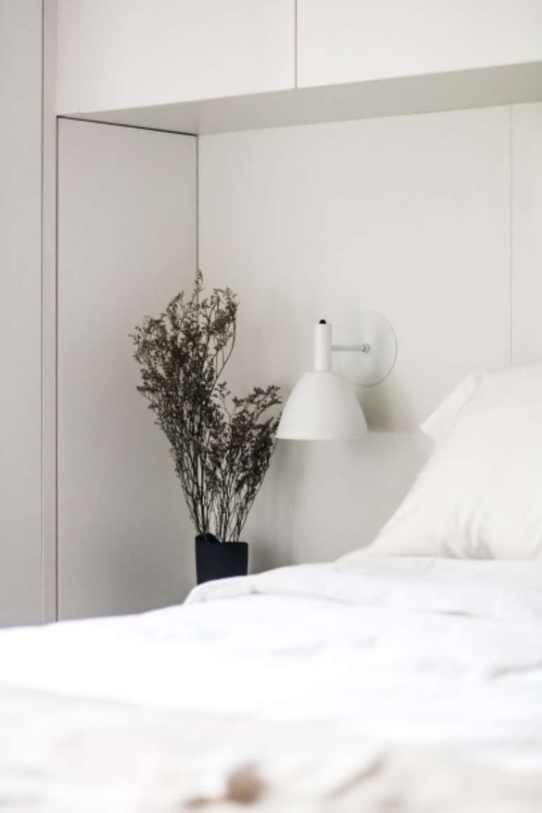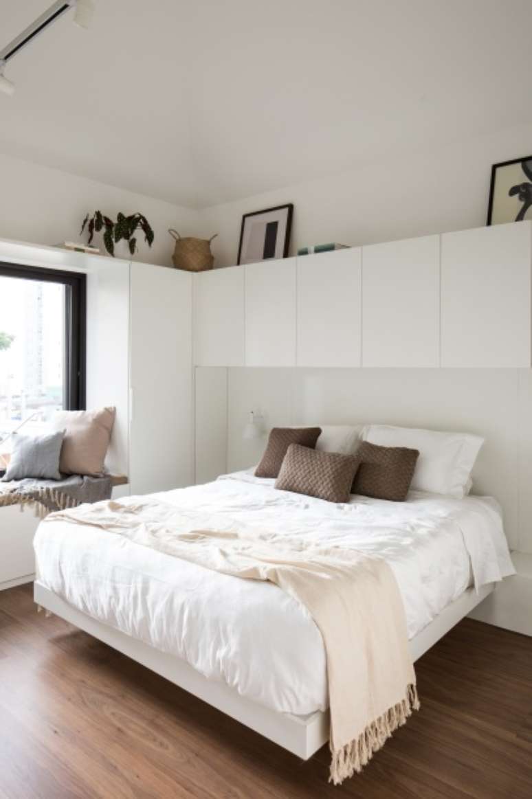 Para a parte íntima, o escritório restaurou os vãos estruturais das treliças de madeira do telhado. Os forros dos quartos foram executados com inclinação, o que aumentou o pé direito e, visualmente, complementou a geometria das treliças.
