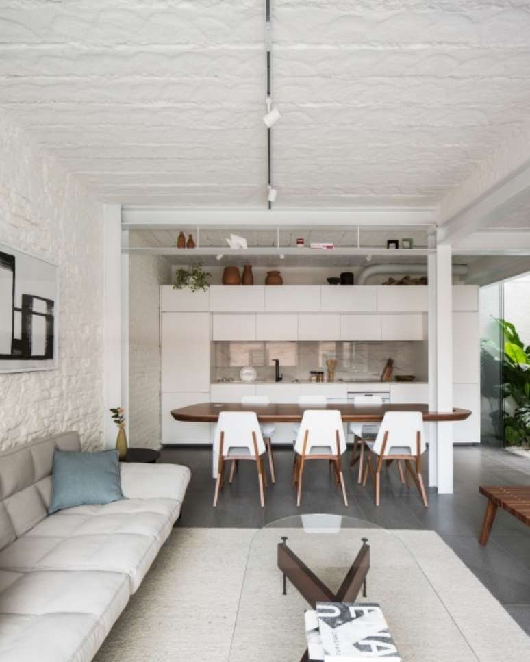 Contudo, como as paredes retiradas eram feitas de tijolo maciço, portanto estruturais, elas foram substituídas por pilares e vigas metálicas aparentes. As paredes remanescentes foram descascadas para mostrar seus tijolos, o mesmo processo foi realizado na laje de concreto pré-moldado.
