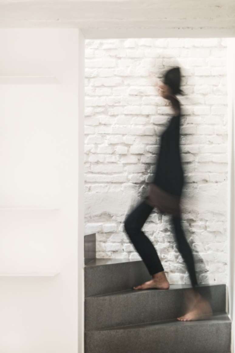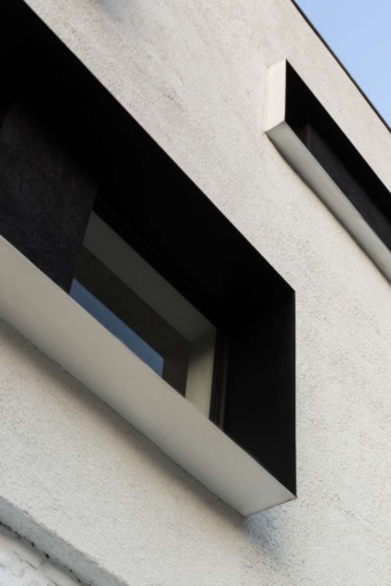 Do lado externo, a fachada, diretamente conectada à rua, também recebeu alterações. Suas aberturas foram alargadas e ajustadas aos novos interiores, garantindo maior entrada de luz natural e ventilação cruzada. Molduras metálicas complementam a incidência de luz funcionando como brises, sobretudo à tarde. Os tijolos originais expostos aparecem aqui mais uma vez, reforçando a história da casa.