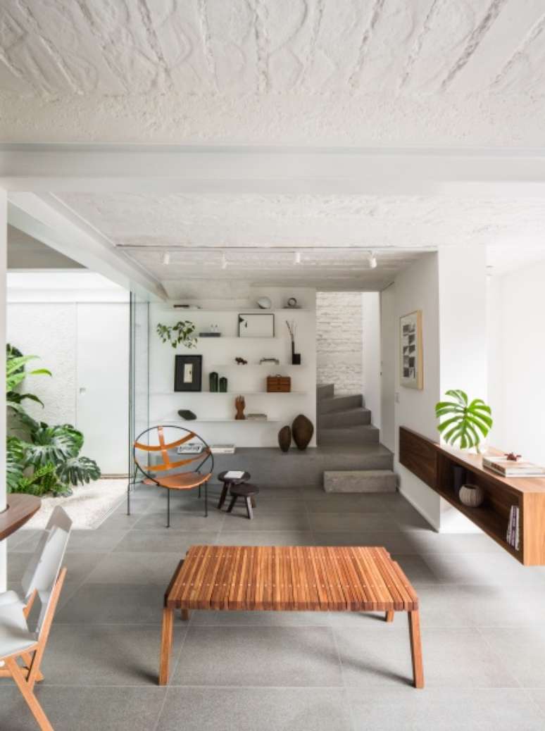"O projeto buscou recuperar as características positivas do imóvel, tanto dos ambientes internos, como o jardim, quanto da fachada e sua relação com a rua e com a vizinhança. Para além disso, o projeto buscou potencializar a ocupação dos espaços, pensando em um modo de vida atual e suas necessidades correlatas", explicam os profissionais.