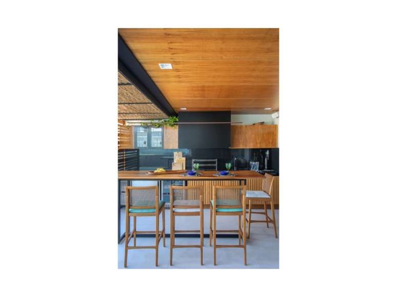Como os clientes são gaúchos e adoram preparar churrasco em casa, não poderia faltar uma super churrasqueira na área coberta, ao lado da piscina", conta o profissional