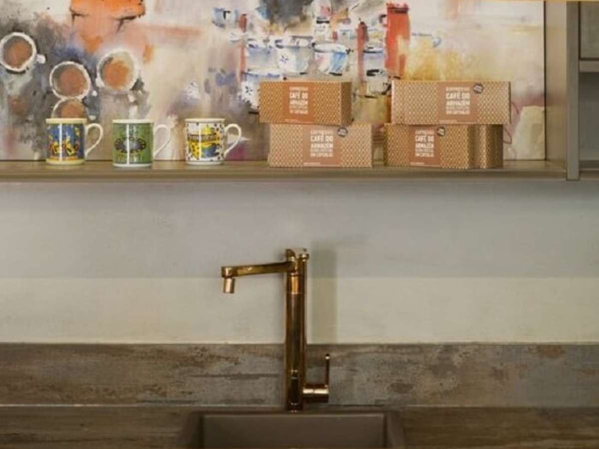 Aqui, o ideal são as torneiras de bica alta, já que toda a cuba está sobre a bancada. E essa é também uma cuba versátil: ela aceita bem a torneira de mesa, instalada na bancada, e a torneira de parede.