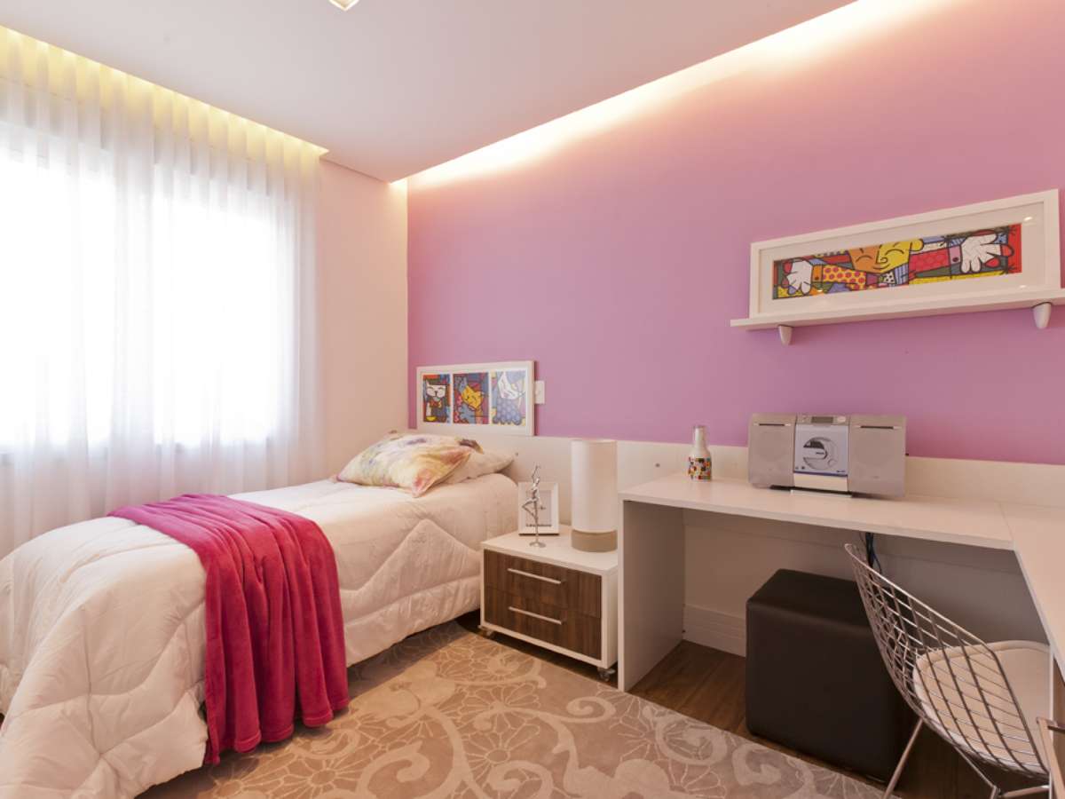 No dormitório de uma adolescente cores como o rosa ou roxo podem até vir bem marcadas mas não são acompanhadas por um tema infantil, como sereias ou princesas. O projeto é assinado pela arquiteta Mayra Lopes. Informações: (11) 3031-9490