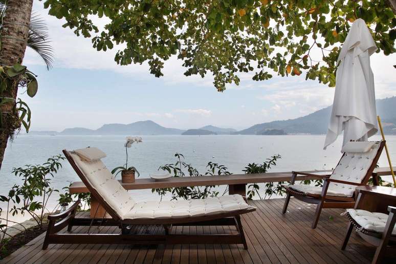 A casa de praia conta com deck amplo de madeira, no projeto das arquitetas Carmen Zaccaro e Marise Kessel