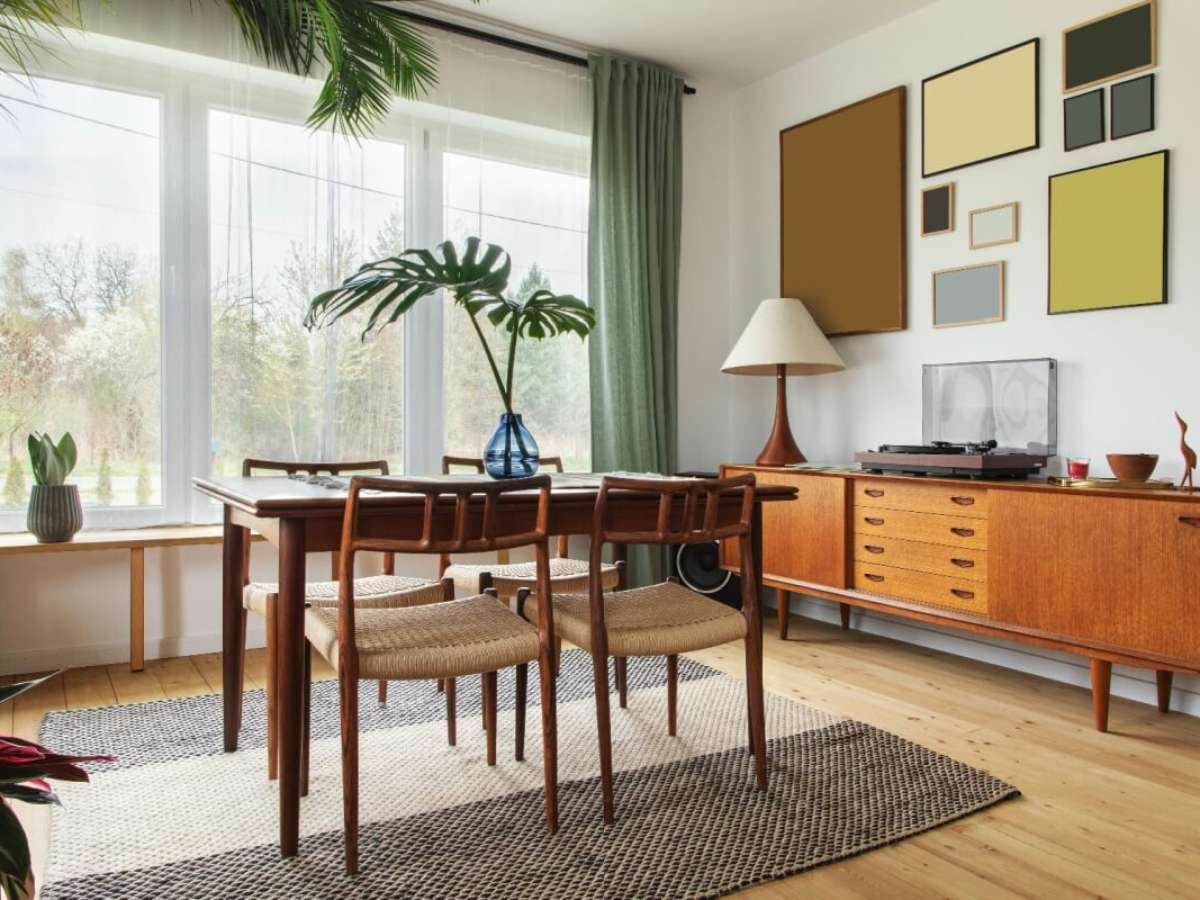 Para ajudar a criar a sensação de aconchego e proximidade com a natureza, pode-se utilizar nos ambientes móveis de madeira, vime ou bambu — sendo possível combinar diferentes tipos de materiais. Por exemplo, vale a pena apostar em uma mesa de madeira com cadeiras revestidas em fibra.