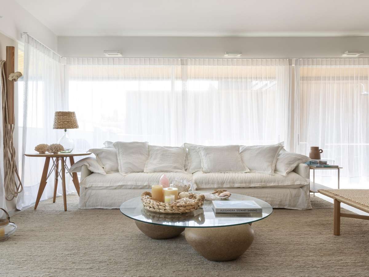 "Opte por fibras naturais, como linho e algodão. Eles trazem uma sensação de leveza e lembram itens bastante usados no litoral, como bolsas e chapéus, além de remeter aos famosos coqueiros. Eles podem ser expostos em um sofá, poltronas e até cortinas de linho na cor palha, além de cadeiras feitas de fibra natural e tapetes de algodão. Móveis de vime ou rattan, um tipo de fibra, também são uma boa pedida, principalmente para a área externa", diz Aline.