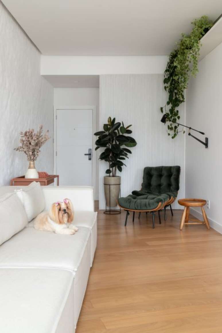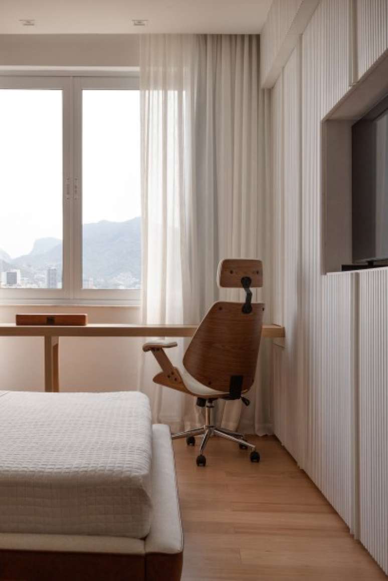 Minimalista, atemporal, contemporâneo. Assim é esse projeto da arquiteta Mariana Monnerat, em parceria com Tainá Binato, que reformou o apartamento de 130 m², em Ipanema (RJ), para um casal que trabalha em home office e desejava um local agradável para a rotina.