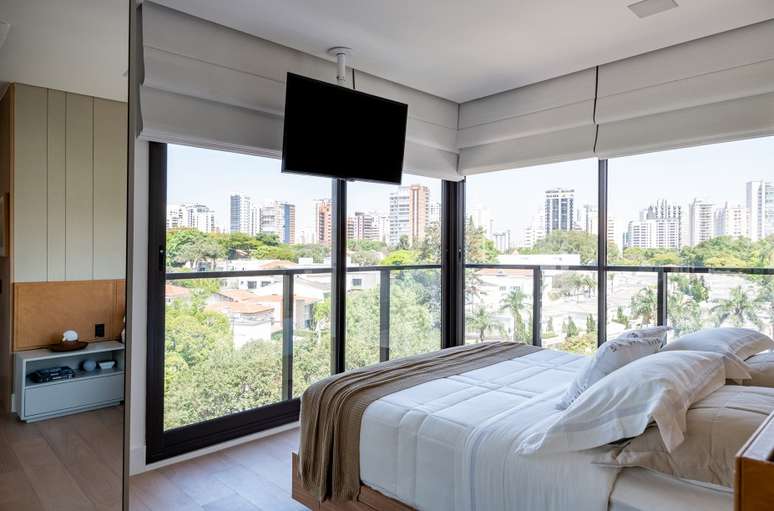 A vista de 180º para o Parque do Ibirapuera (SP) precisava, sem dúvida, ser o centro do projeto deste apartamento de 172 m² assinado por Ana Carolina Queiroz. Tanto que os clientes cogitaram até a abrir mão da TV na sala para não interferir na paisagem. E a profissional ainda precisou conciliar os gostos pessoais - antagônicos - dos moradores.