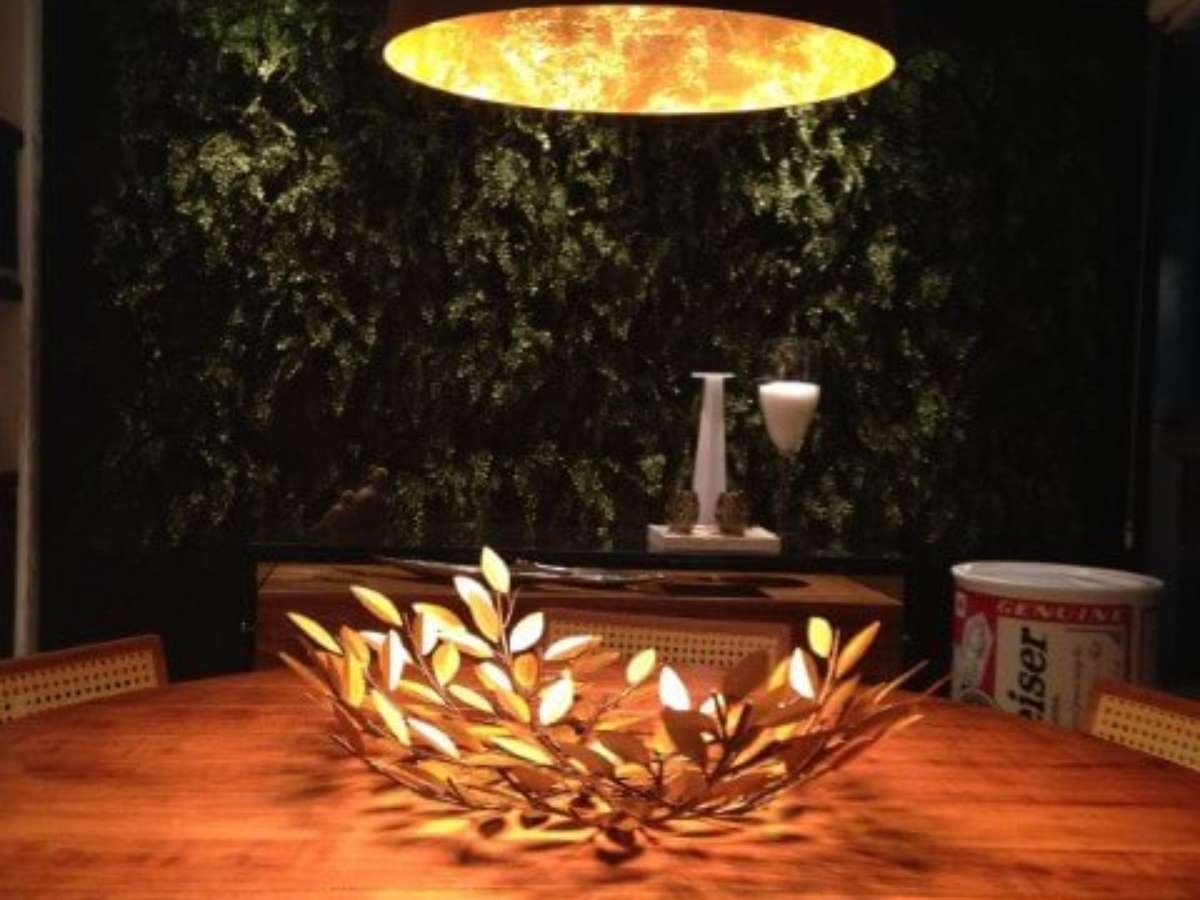 1. A luminária localizada exatamente em cima do centro de mesa o deixou em destaque. Projeto de Rodrigo Martinelli