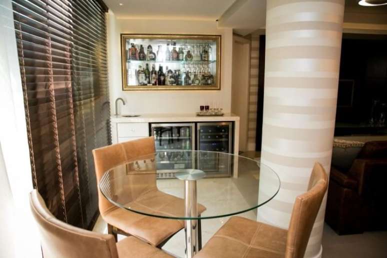 35. A mesa redonda pequena acomodou confortavelmente quatro cadeiras. Projeto de Tatiana Baroni