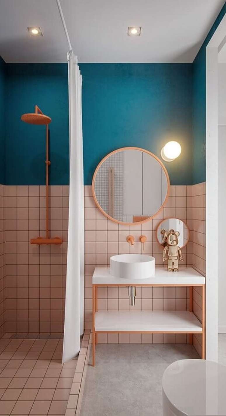 33. Decoração moderna com azulejo de banheiro azul e coral. Foto: Homify