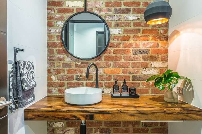 Mas caso você sinta necessidade desse toque rústico nas paredes do banheiro você pode optar por deixar uma única parede feita em tijolo à vista ou mesmo com um revestimento que imita madeira. Além disso, também tem a opção de usar pedras como revestimento de banheiros rústicos, mas nesse caso será necessário fazer uma reforma maior.