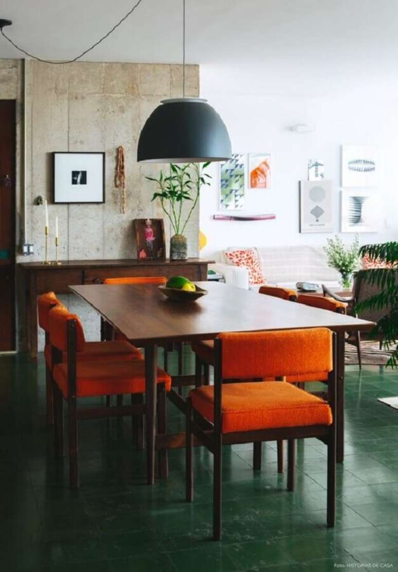 4. Cadeiras acolchoadas para mesa de jantar decorada com luminária pendente moderna – Foto: Pinterest