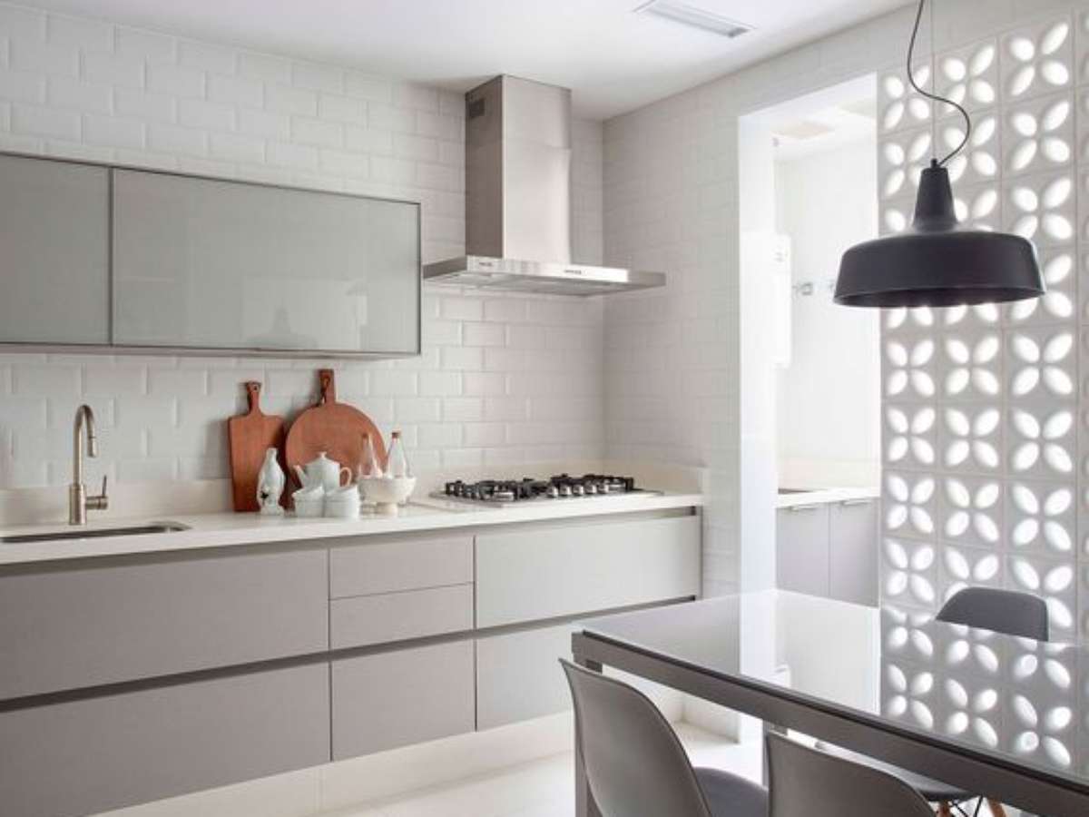9. Decoração moderna com armários planejados e azulejo de cozinha 3D branco e cerâmica para cozinha – Foto Fashion Bubbles