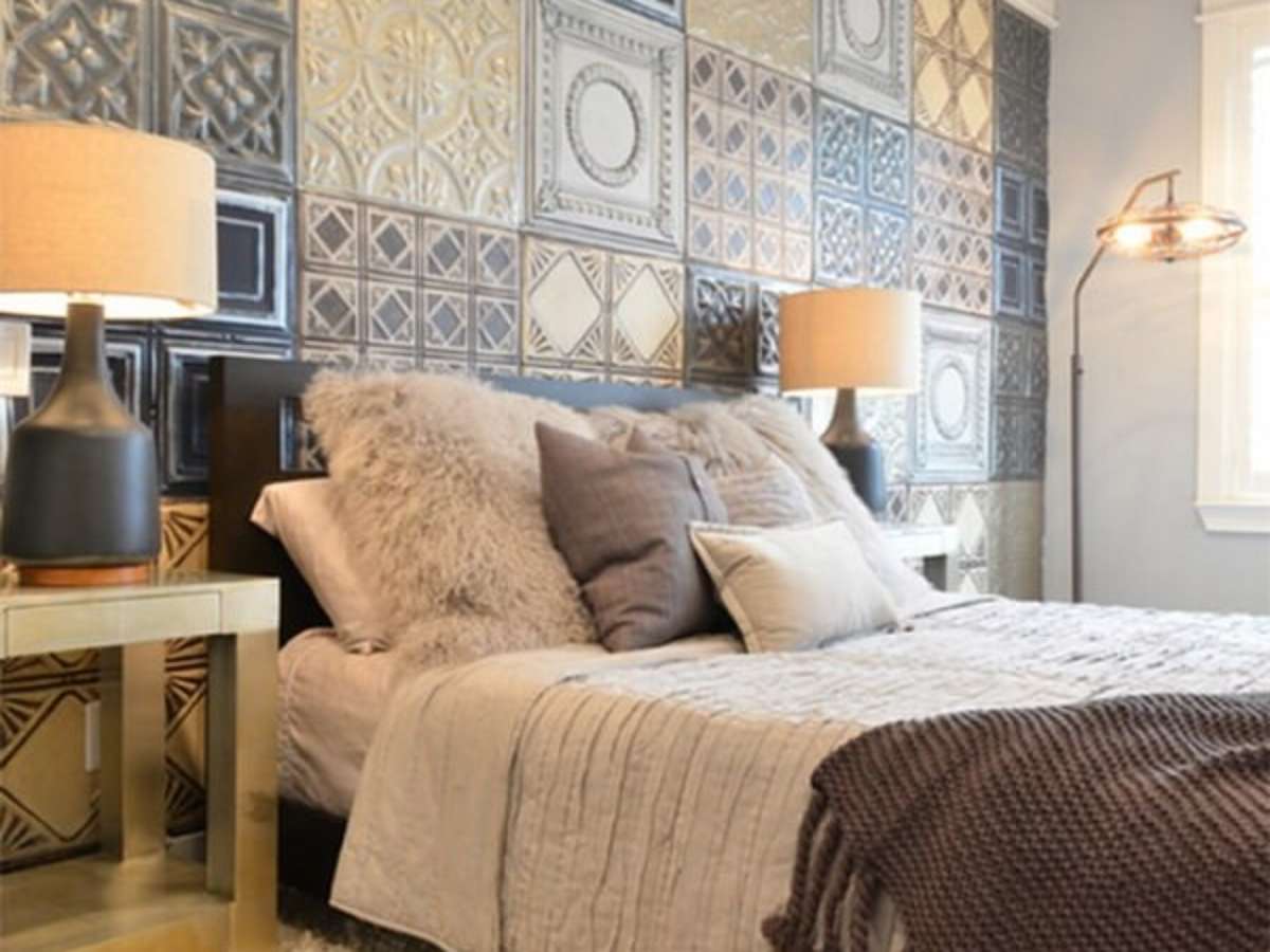 8. A área da cabeceira da cama foi revestida com peças cerâmicas. Fonte: Pinterest