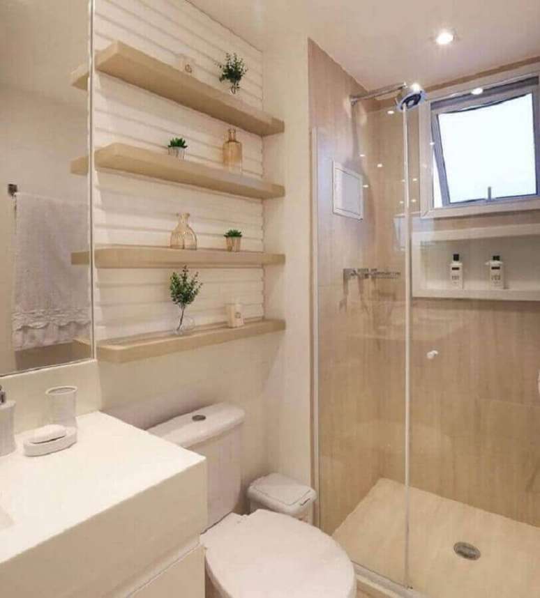 A cor de creme para banheiro é sempre muito bem vinda, pois esse ambiente costuma ser um dos menores da casa, e por isso é preciso usar cores mais claras que ajudam na sensação de amplitude do espaço compacto.