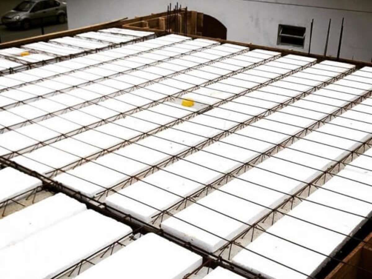 A principal diferença dessa laje com relação a laje pré-moldada anterior é somente o revestimento. Aqui, a laje pré-moldada treliçada com EPS se utilizada de placas de isopor em seu sistema ao invés de lajotas de concreto ou cerâmica.