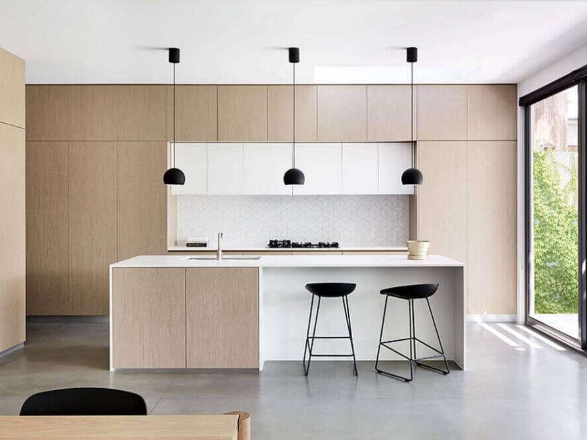 14. Inspire-se com esse modelo de luminária para cozinha embutida na marcenaria e a linda e minimalista luminária pendente para cozinha
