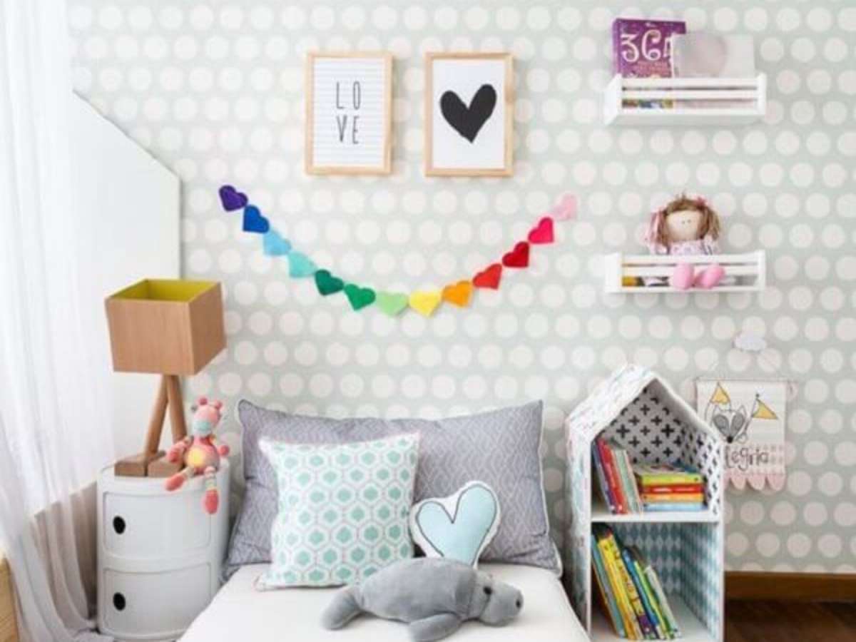 Se for um quarto de menina super romântico, por exemplo, um papel de parede delicado feminino com estampa floral ou mesmo algo mais vintage pode ser super interessante, já um quarto infantil um pouco mais descontraído e moderno, pode contar com um papel de parede geométrico delicado com estampa em tons pastéis.