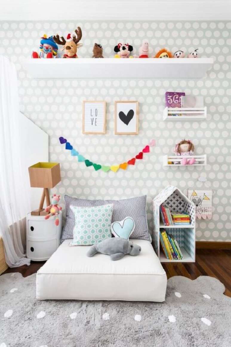 15. Decoração infantil com papel de parede delicado com bolinhas coloridas – Foto: Pinterest
