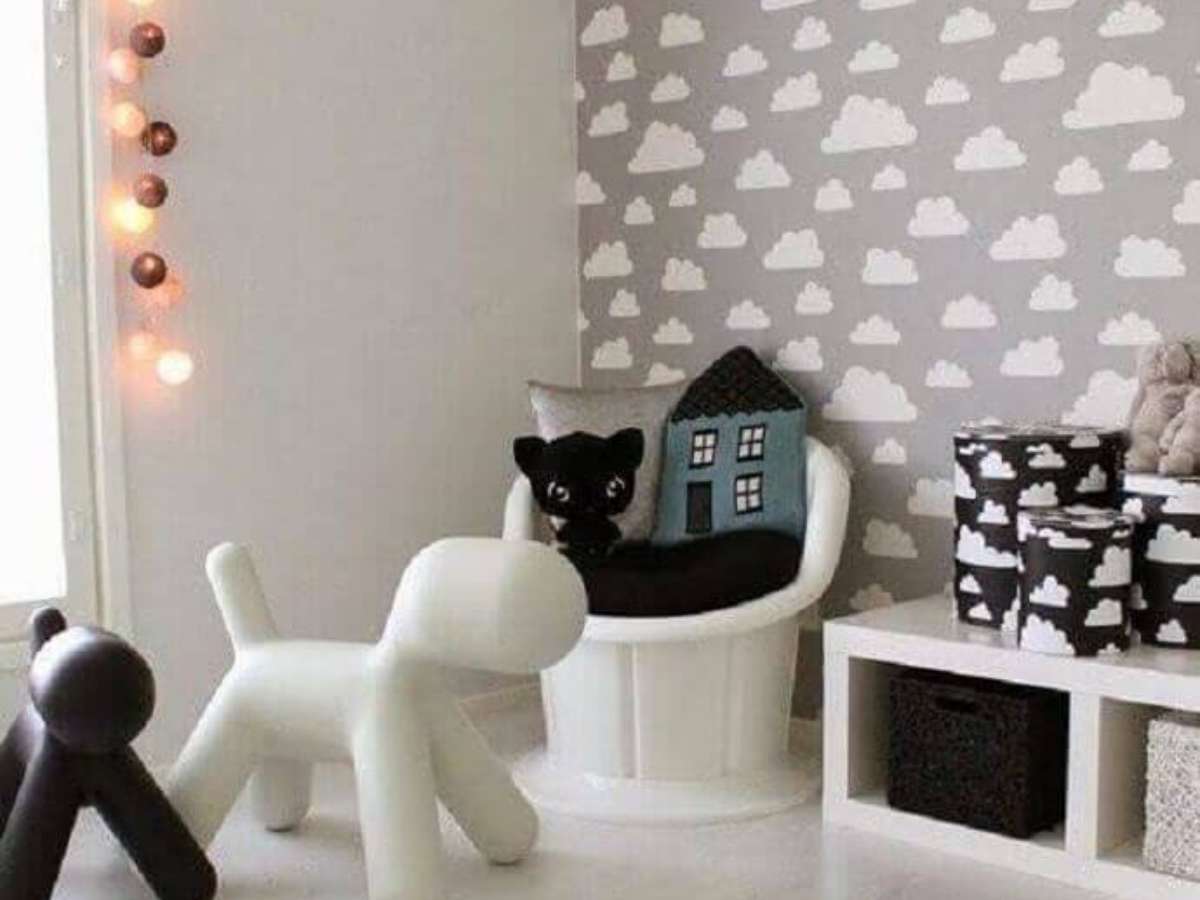 20. Linda decoração lúdica com papel de parede para quarto de bebê
