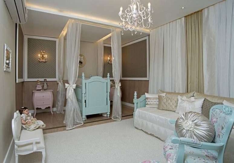 23. A poltrona de amamentação pode aparecer em quarto de estilo provençal. Projeto por RCB Arquitetura.