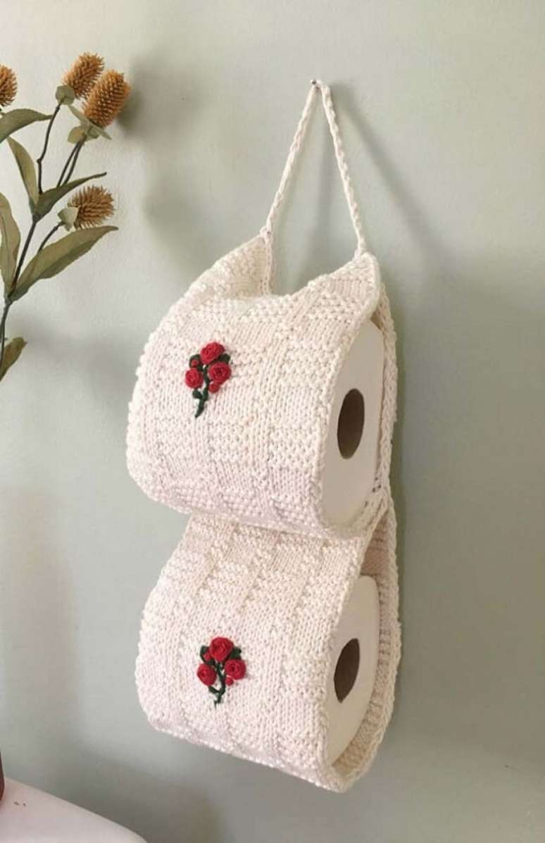 18. Tenha um porta papel higiênico de crochê para guardar os rolos de papel no banheiro – Por: Pinterest
