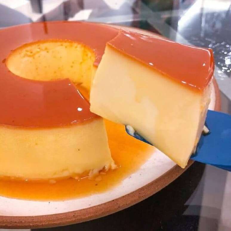 Por isso, após fazer a sua receita de pudim de leite condensado coloque-o na geladeira quando estiver morno e deixe gelar por pelo menos 2 horas. Então, aqueça a forma do pudim rapidamente no fogo baixo para que a calda derreta e utilize seu prato para doces ou sua boleira favorita para desenformar.