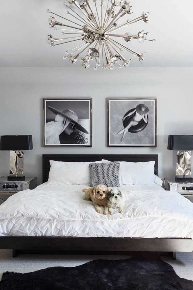 27- Na decoração moderna os quadros para quarto e os objetos decorativos são todos em branco e preto. Fonte: Red Square Arquitetura