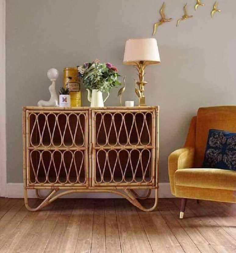 46. Decoração rústica com armário com detalhes em rattan – Foto: Modra Strecha