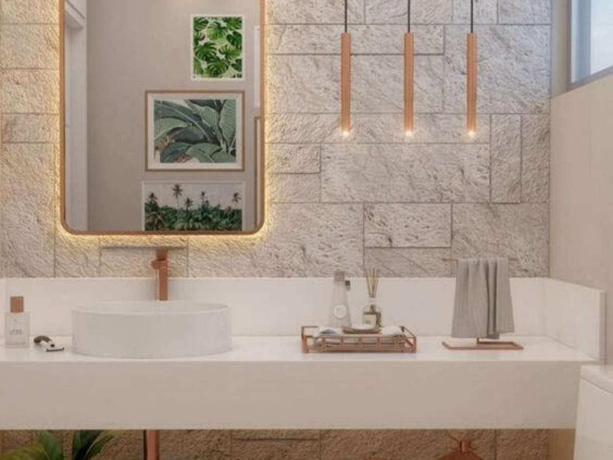 O revestimento bege para banheiro, por exemplo, precisa ser antiderrapante e fácil de lavar. Quanto mais prático for para higienizar no dia a dia, melhor. Além disso, evite os revestimentos que estragam com a umidade, como o mdf e o gesso.