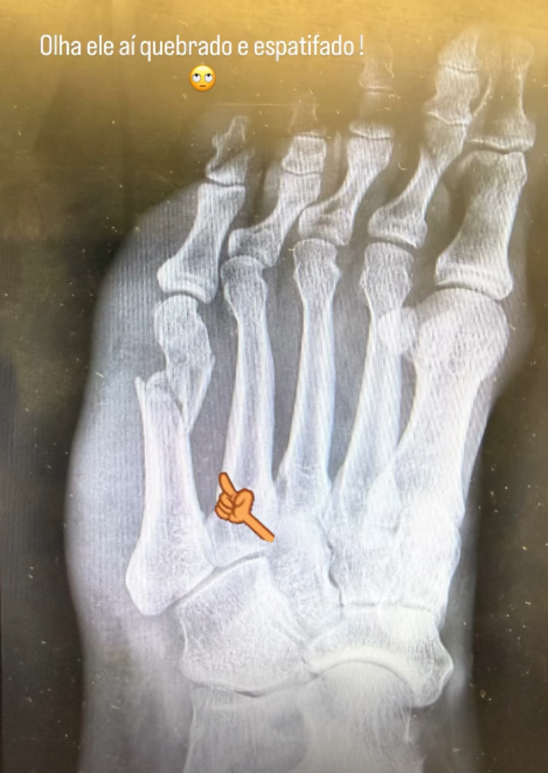 Com a queda, ela fraturou o quinto metatarso e precisará passar por cirurgia.