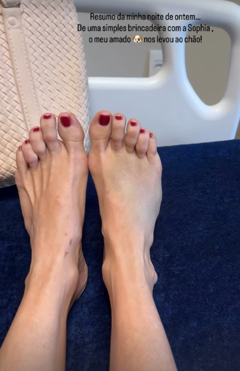 A atriz precisou ser internada no Rio de Janeiro depois de quebrar o pé ao cair durante uma brincadeira com a filha.