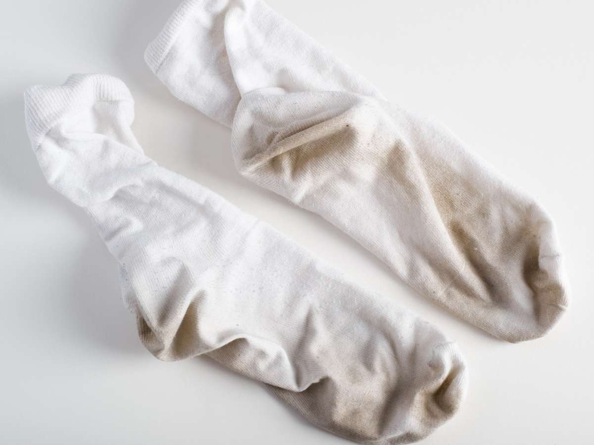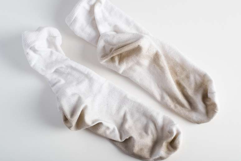 Suor, atrito dos sapatos e sujeira do dia a dia deixam manchas escuras difíceis de remover das meias