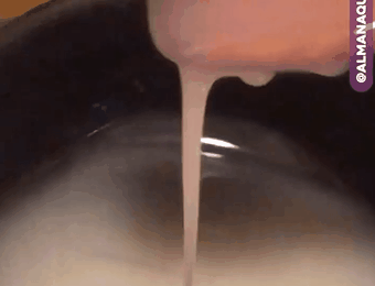 É importante que você mexa sem parar até que dê o ponto, caso contrário a mistura pode empelotar. Dessa forma, queremos que a mistura atinja uma consistência de mingau, como na imagem abaixo.
