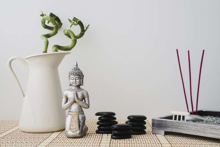 - Buda Sorridente: segundo a especialista, a imagem de um Buda sorridente representa alegria e felicidade. "Coloque-o em um local elevado, de modo que ele possa irradiar boas energias para toda a casa", aconselha;