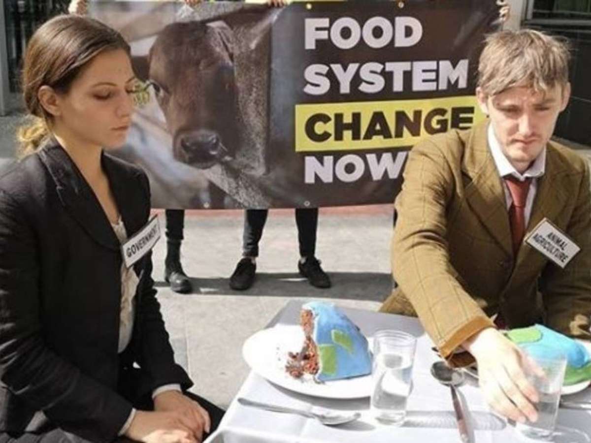 No Reino Unido, ativistas protestam para que governo transite para um sistema alimentar vegetal.