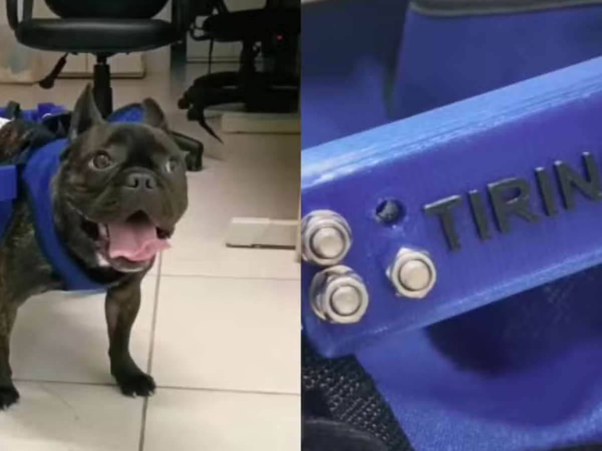 Matheus explicou que a estrutura utilizada por Tiringa é resultado da adaptação de projetos já existentes. Portanto, a equipe ajustou cada detalhe para atender às necessidades específicas do cachorro, garantindo conforto e eficiência. "Partimos de modelos disponíveis e fizemos os ajustes necessários para imprimir e montar com nossa metodologia. Utilizamos PLA em impressoras de filamento, acrescentamos parafusos para fixação e rodas de patins, que oferecem ótimo desempenho no deslocamento", destaca o professor.