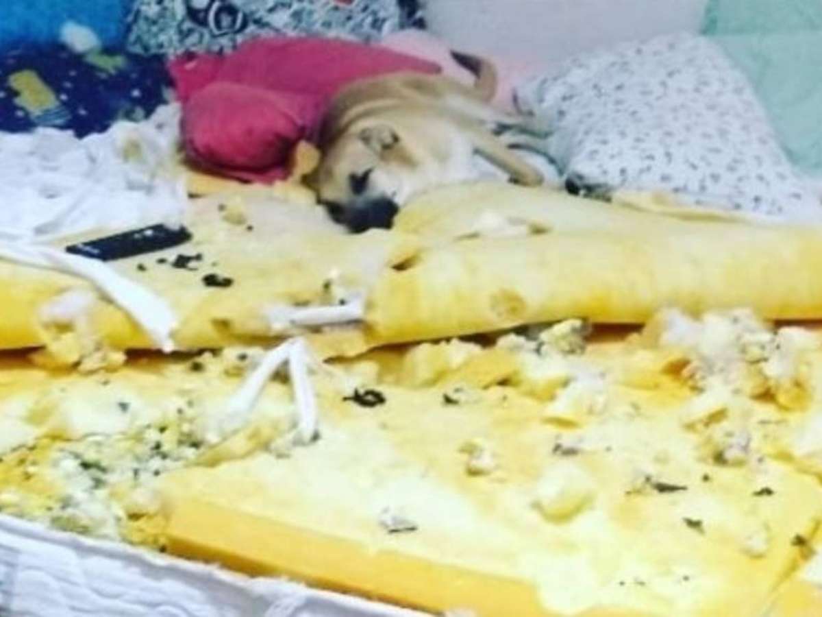 Cão que ficou conhecido após destruir cama da tutora ganha colchão novo; veja