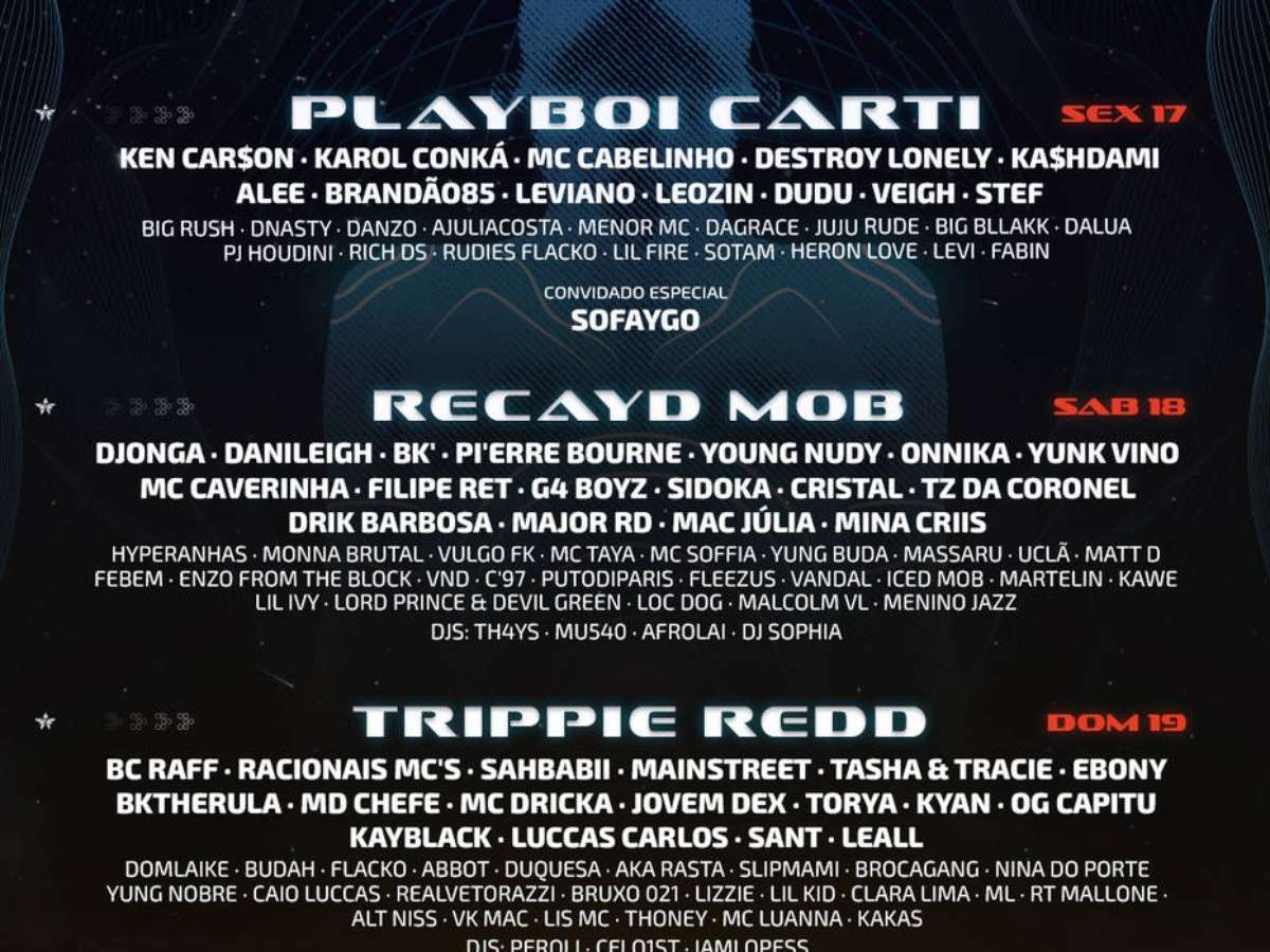 Os shows vão acontecer entre os dias 17, 18 e 19 de junho no Sambódromo do Anhembi, em São Paulo. Além de Playboi Carti - que já havia sido anunciado como parte do evento e é uma das presenças mais esperadas pelos fãs, o festival terá a presença de Sofaygo, aposta recente da Cactus Jack Records, gravadora de Travis Scott.