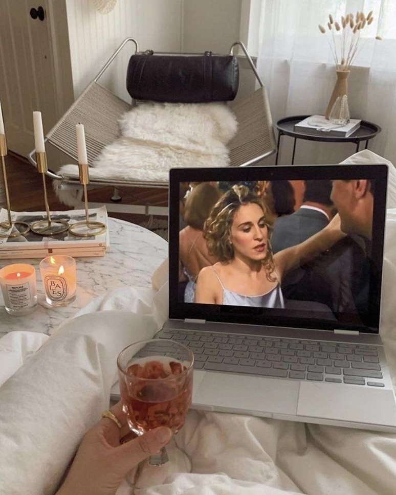 Faça uma maratona daquela série que você ama. Prepare uma pipoca e use sua máscara facial favorita. Quando você se diverte sozinha, nada mais importa.