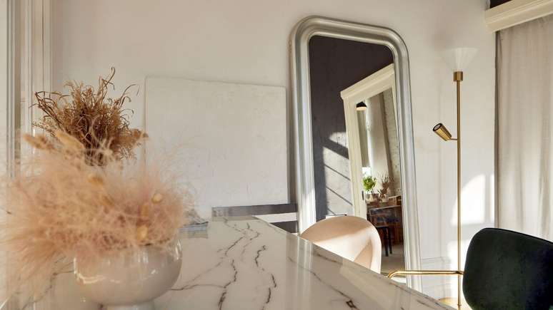 Para ampliar espaços pequenos, o espelho pode simular uma parede extra. Mas antes de instalar, avalie o reflexo: ver constantemente sua própria imagem - como sentada no sofá - pode gerar incômodo visual e energético. Para iluminar onde a luz não chega, basta posicioná-los de modo que reflitam uma janela ou luminária. Teste ângulos com um espelho móvel: a diferença é imediata e melhora a energia do ambiente.