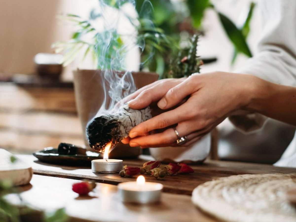 Ervas como sálvia, arruda ou palo santo são usadas para renovar o ambiente.