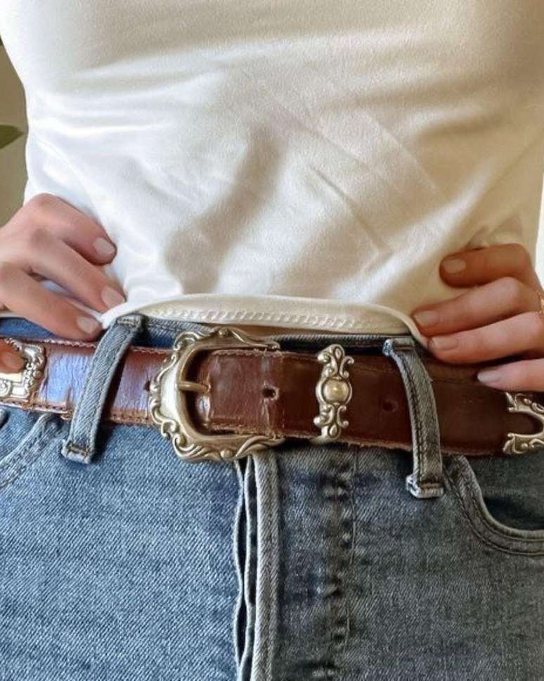 Aposte no cinto de fivela para incrementar o look country - Foto: reprodução/Pinterest.
