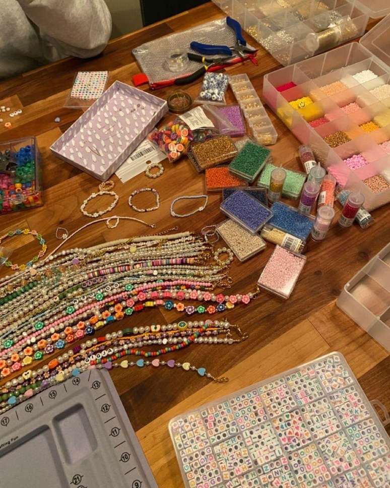 No final da noite, cada uma sai com um acessório novo feito por uma amiga. É uma forma linda de materializar o carinho que vocês têm umas pelas outras. Soltem a imaginação nas cores!